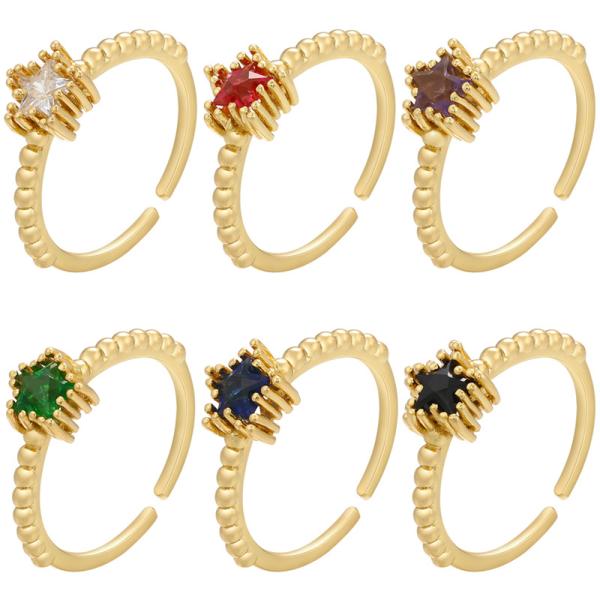Engagement Rings For Women Adjustable Gold Plated Colorful Star Gemstone Zircon Ring